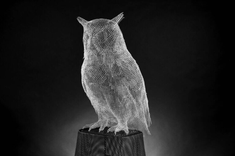 Con le figure della serie Bestiary, che diventano parte integrante del luogo in cui sono ospitate, Liparesi gioca sul contrasto tra la leggerezza della trama metallica e la forza della plasticità impressa con il modellato, sulla dialettica di pieni e di vuoti, sull’atmosfera che si sostituisce alla materia.