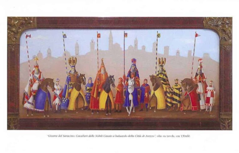 La Giostra del Saracino, Gli sbandieratori, il Polifonico emergono con i loro colori vivaci nella loro forza cromatica di una aretinitร  sempre viva e presente di Marga, anche negli scorci delle piazze, dei vicoli e di quelle finestre sulla storia che vede sempre โ€œla sua Arezzoโ€ protagonista. Ma in questa mostra che abbraccia cinquantโ€™anni di attivitร  si riscopre anche le Madonne trecentesche che furono le prime forme espressive della pittrice.