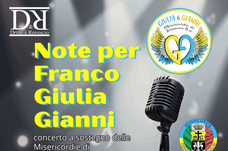 Una serata di musica, memoria e solidarietà: è questo lo spirito di “Note per Franco, Giulia, Gianni”, il concerto promosso da Dritto e Rovescio a sostegno delle Misericordie di Terranuova Bracciolini e San Giustino Valdarno.