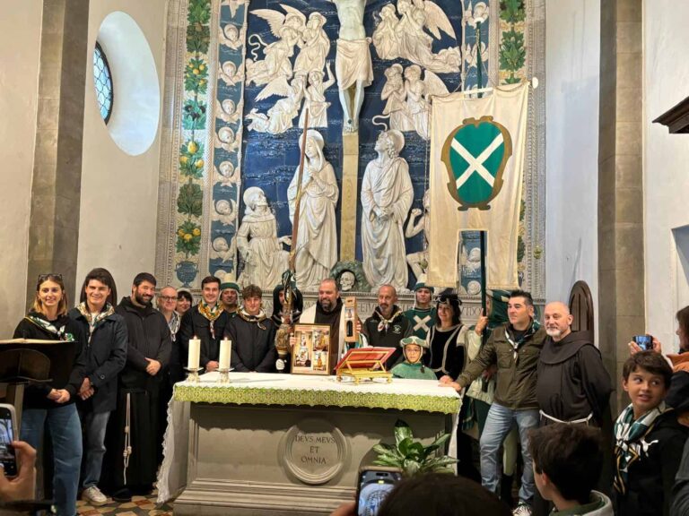 Nel quadrante del santuario l’accoglienza di fr. Guido Fineschi, padre guardiano del Santuario, assieme al vicario fr. Davide e al sacrista fr. Daniele; suggestiva e carica di emozione la processione nella Cappella delle Stimmate dove c’è stata la Preghiera e il Padre Guardiano ha impartito al Quartiere ai suoi abitanti la benedizione di San Francesco.