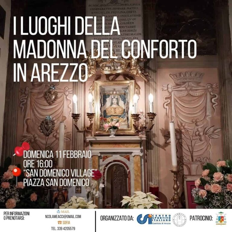 AREZZO – Domenica 11 febbraio dalle ore 16:00, il Centro Sportivo Italiano – Comitato di Arezzo organizza la passeggiata culturale e visita dedicata a “I luoghi della Madonna del Conforto in Arezzo”.