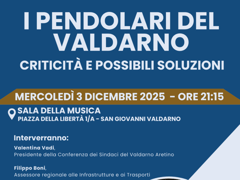 La questione dei treni nel Valdarno torna al centro del dibattito. Mercoledì 3 dicembre, alle 21,15, la sala della musica di San Giovanni Valdarno ospiterà incontro promosso dalla Conferenza zonale dei sindaci del Valdarno aretino insieme ai sindaci del Valdarno fiorentino, da anni impegnata nel segnalare ritardi, soppressioni e carenze di comunicazione che continuano a pesare sulla quotidianità dei pendolari della tratta Firenze–Arezzo.