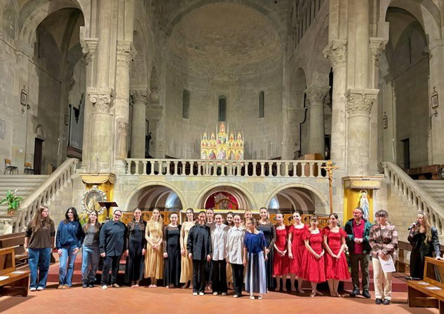 Mercoledì 1° aprile 2026 poco dopo le 20.30 Alice, Ambra, Aurora, Bianca, Chiara, Costanza, Emma, Isabella, Lia Angela, Melissa, Rebecca, Rosa, Sara F., Sofia F., Sofia P., Sofia Z., Viola e Vittoria hanno danzato con grazia e autenticità al centro della Pieve di Santa Maria di Arezzo.
