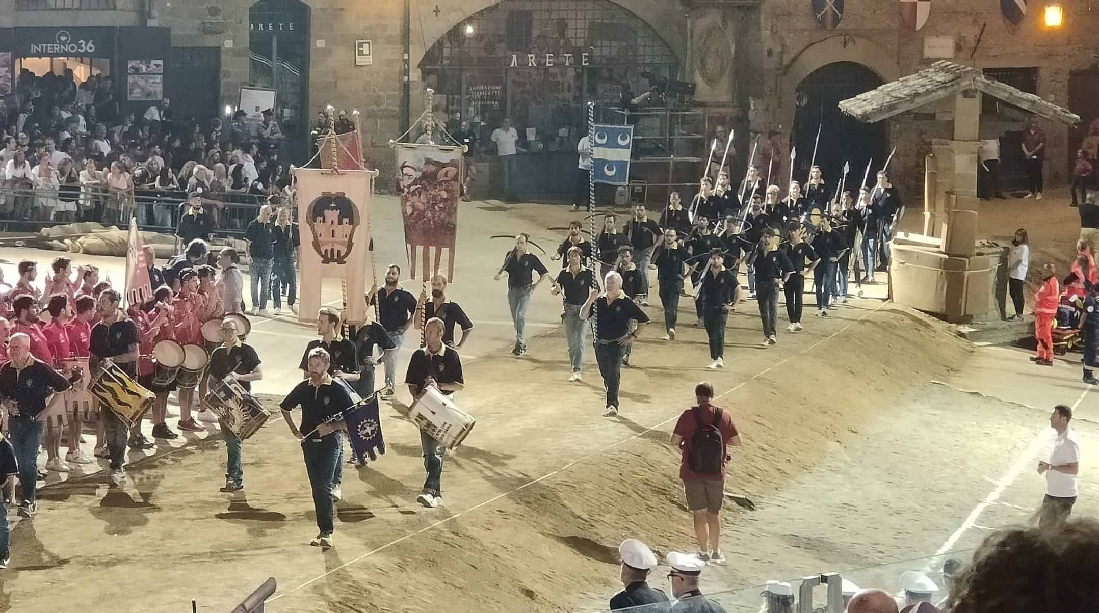 Per Porta Crucifera le medesime riserve della scorsa provaccia: Niccolò Paffetti in sella all’haflinger “Rosa” e Andrea Bennati su “Toro Seduto”. Infine per Porta Sant’Andrea: Leonardo Tavanti in sella a “Sibilla” e Matteo Bruni su “Bianca”.