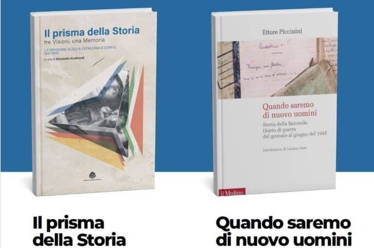 Il primo è “Il prisma della Storia. Tre visioni, una Memoria, la Divisione Acqui a Cefalonia e Corfù 1941-1943” a cura di Elisabetta Giudrinetti, Edizioni Medicea Firenze. Il secondo volume è “Quando saremo di nuovo uomini. Storia della faccenda. Diario di guerra dal gennaio al giugno del 1945” di Ettore Piccinini, Archivio Diaristico Nazionale, Il Mulino.