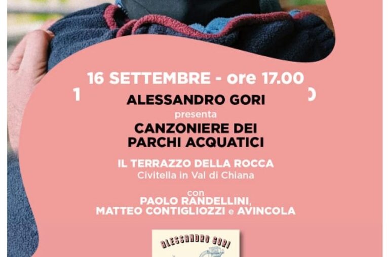 “Un libro che è un cocktail da buttare giù tutto d’un fiato”. Si terrà sabato 16 settembre, alle ore 17, presso il Terrazzo della Rocca di Civitella la presentazione del nuovo libro di Alessandro Gori, “Canzoniere dei parchi acquatici” (Rizzoli Lizard, 2023).