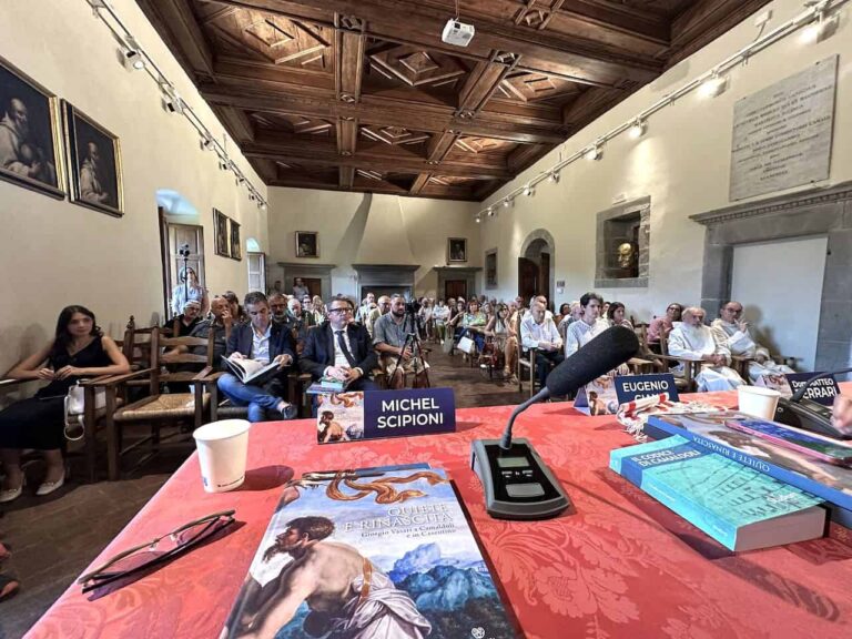 Camaldoli, 6 agosto 2024 – Una folla di appassionati ha seguito domenica 4 agosto al monastero di Camaldoli l’inaugurazione della mostra “Quiete e Rinascita”, che espone 16 capolavori di Giorgio Vasari, commissionati dal Monastero di Camaldoli e sempre rimasti là dove erano stati pensati dal grande artista.