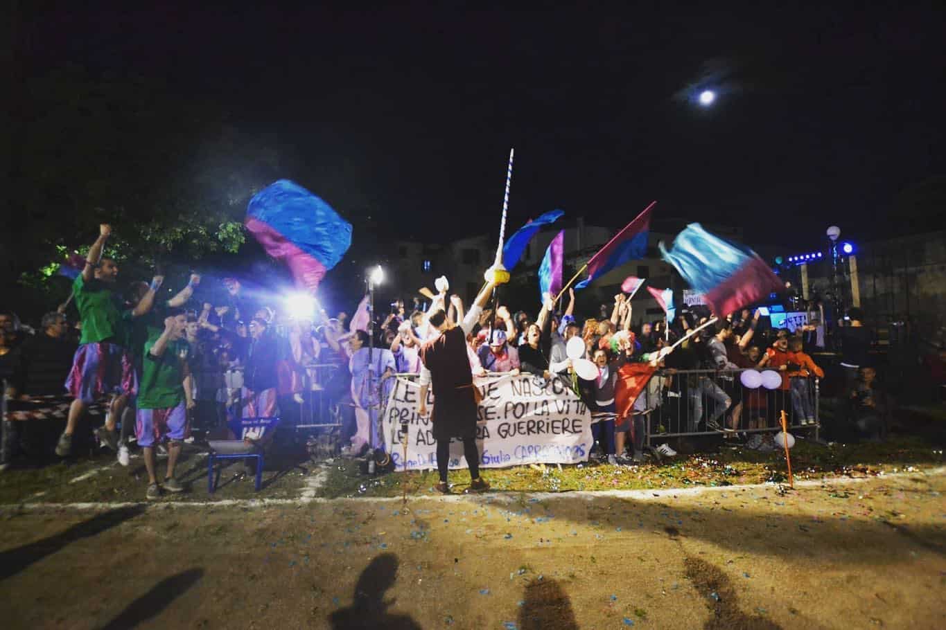 Quattro sono i rioni in gara, che secondo la tradizione si sfidano anche prima della carriera, facendo a gara nell’addobbare il paese: il Borgo, la Lama, Di là dal Ponte e Villa Rosa.