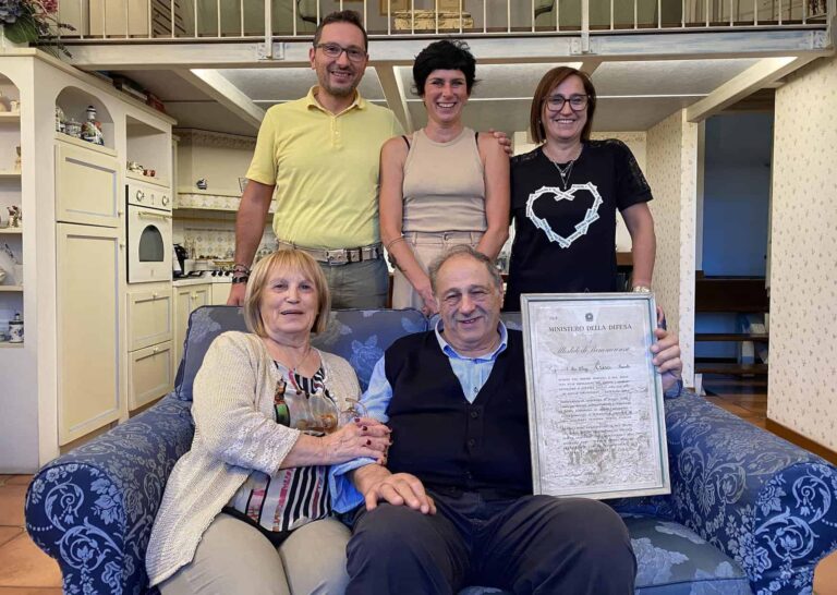 Renato mostra l’Attestato di Benemerenza che gli fu riconosciuto come a tanti altri giovani dal Ministero della Difesa. A un certo punto in questo attestato si trova scritto “riaprirono le strade, gettarono i ponti, donarono ai superstiti il conforto di una assistenza fraterna, fiorita d’amore”.