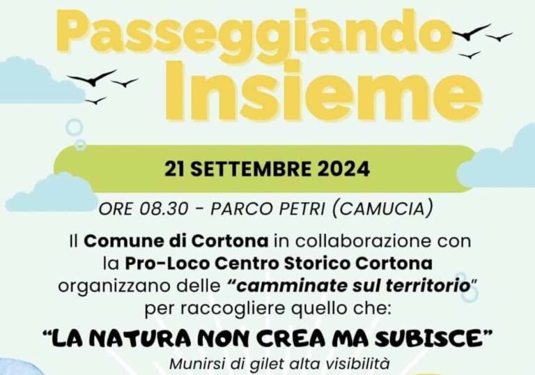 L’appuntamento è questo sabato 21 settembre a Camucia, con ritrovo al parco Petri alle 8,30.