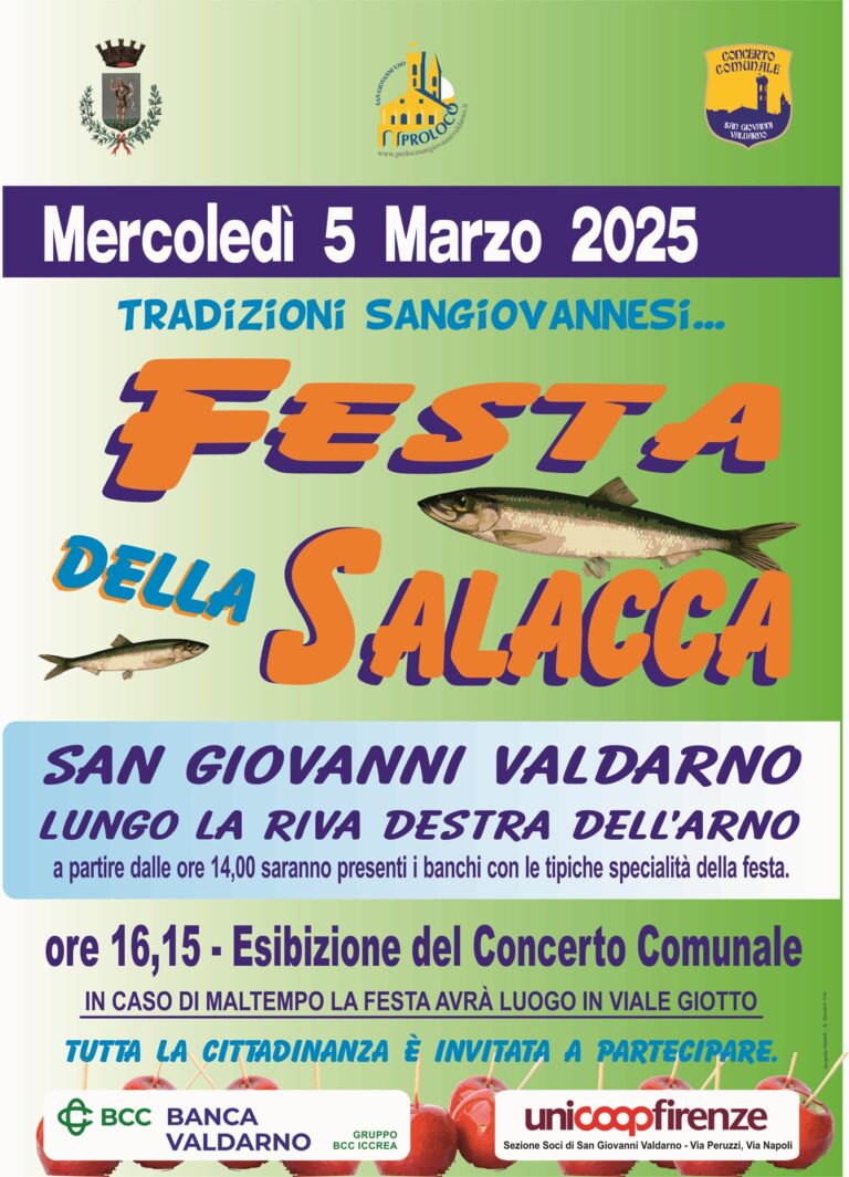 San Giovanni Valdarno si prepara ad accogliere con entusiasmo la tradizionale Festa della Salacca, organizzata dalla Pro Loco sangiovannese con il patrocinio del Comune.