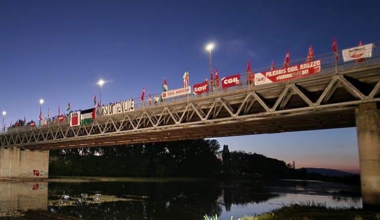 Nella provincia di Arezzo un vasto schieramento di associazioni, sindacati e partiti ha partecipato al sit in, sostenendo โlโiniziativa umanitaria e nonviolenta promossa dalla Global Sumud Flotilla, partita dal basso, mobilitando singole persone di ogni parte del mondo per rompere lโembargo e lโisolamento della popolazione palestinese di Gaza, assediata ed affamataโ.