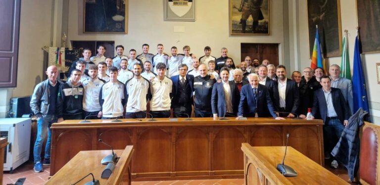I freschi vincitori del Campionato di Eccellenza, con annessa promozione in serie D, sono stati ricevuti dal sindaco Fabrizio Innocenti, accompagnato per l’occasione dall’assessore Mario Menichella e dal consigliere Giuseppe Pincardini.