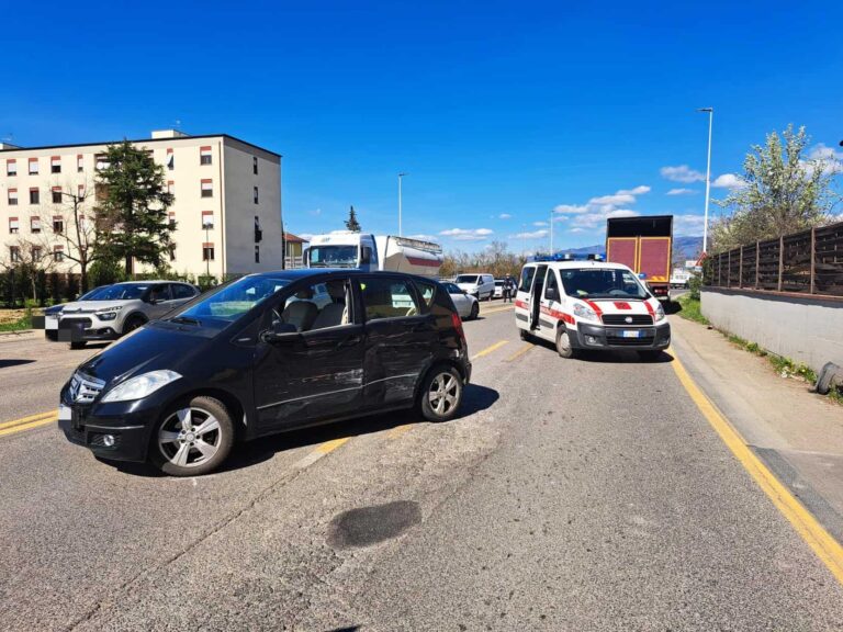 Scontro fra un’auto e un camion nel primo pomeriggio di oggi, mercoledì 20 marzo, nei pressi dell’incrocio di Via Fiorentina, ad Arezzo. L’incidente stradale si è verificato all’imbocco di Viale Giovanni Amendola poco dopo il semaforo, in direzione zona Setteponti. Sembra siano rimaste coinvolte due persone, una donna e un bambino, entrambe portate al pronto soccorso dell’Ospedale San Donato di Arezzo in codice verde. Sul posto è intervenuta la Croce Bianca e la Polizia Municipale di Arezzo.