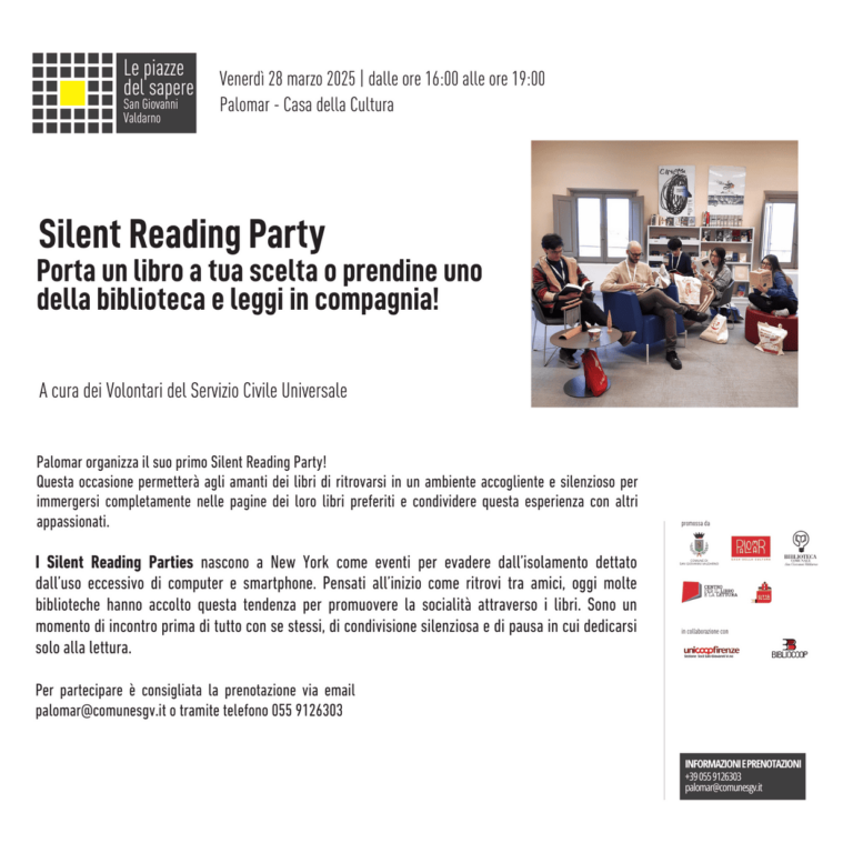 Infine, venerdì 28 marzo dalle 16 alle 19 Palomar organizza il primo Silent Reading Party, a cura dei volontari del Servizio Civile Universale.