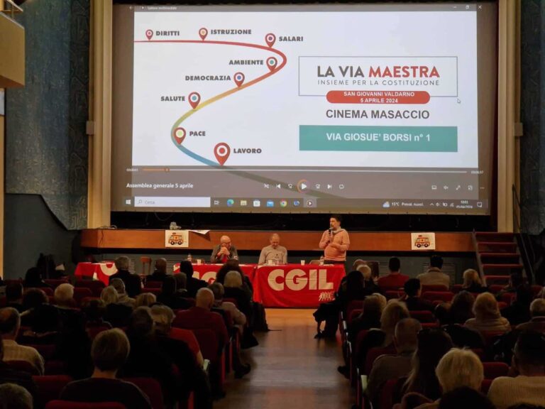 Stamani al cinema Masaccio di San Giovanni riunione delle Assemblee di tutte le federazione di categoria; l’11 aprile sciopero generale di 4 ore – insieme alla Uil – con iniziativa a Firenze e con un presidio anche ad Arezzo, in piazza San Jacopo, dalle 15 alle 17 e infine la raccolta firme per quattro referendum finalizzati a restituire diritti e tutele ai lavoratori. All’incontro di stamani al Masaccio ha portato il suo saluto anche Valentina Vadi, sindaca di San Giovanni e presidente delle Conferenza dei sindaci del Valdarno.