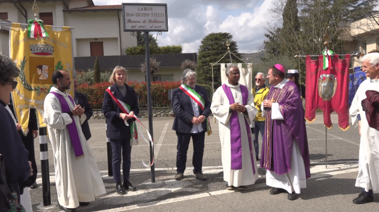 Una intitolazione a Don Guido Tiezzi che è seguita alla cerimonia religiosa che ha visto la presenza del Vescovo di Arezzo Cortona Sansepolcro S.E. Mons. Andrea Migliavacca.