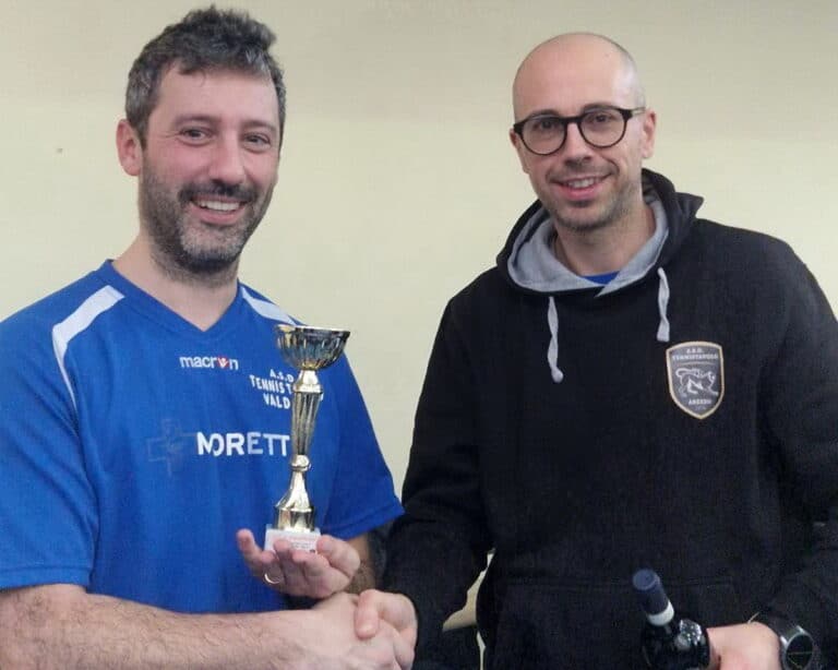 Nell’immagine Claudio premiato da Andrea Della Giovampaola del Tennistavolo Arezzo.