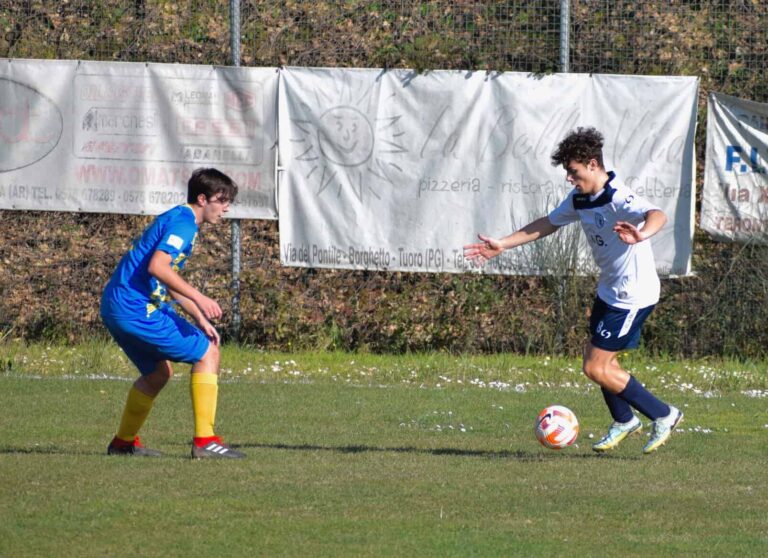 Il primo quarto d’ora di gioco del Terontola è prepotente, concede poco e niente alla Faellese e al 15’ segna il 2 a 0 con Sandrelli, bravo a sfruttare un’altra distrazione della difesa azzurra, il giocatore gialloblù lascia partire un tiro rasoterra verso il secondo palo che colpisce il legno e finisce in fondo alla rete. Un primo segno di riscossa della Faellese arriva al 22’ con De Marco che tenta un dribbling al limite dell’area e si libera per il tiro, pallone parato in calcio d’angolo.