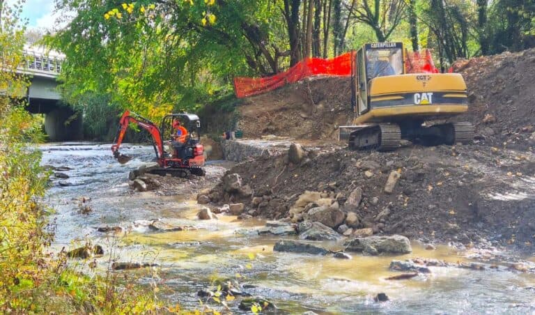 In questi giorni, cantieri al all’opera per il ripristino della soglia di fondo e della protezione di sponda in gabbioni del torrente Ciuffenna, poco a monte della confluenza nel fiume Arno.
