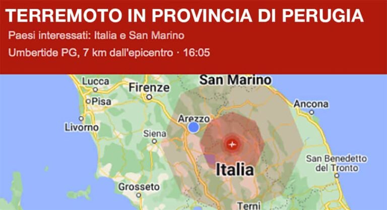 Un terremoto di magnitudo ML 4.4 è avvenuto nella zona: 5 km E Umbertide in provincia di Perugia la scossa è stata avvertita anche nell’aretino.