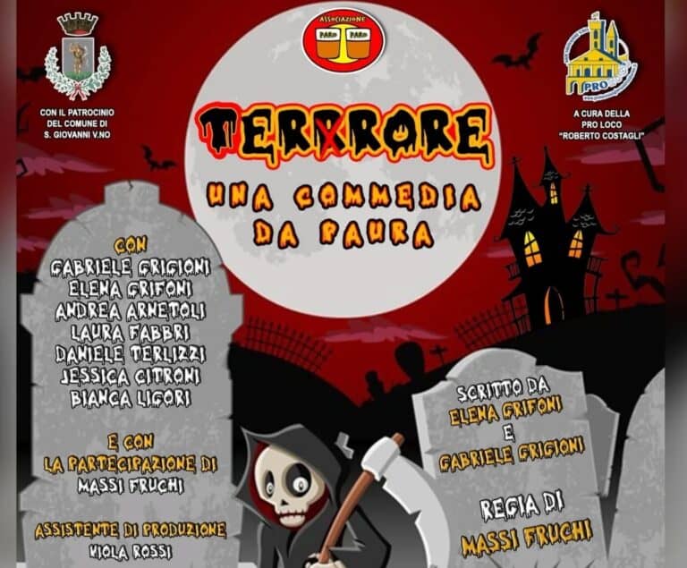 All’interno del programma del Luglio sangiovannese, giovedì 17 luglio alle 21,15 i giardini di via della Costituzione si trasformeranno in un palcoscenico a cielo aperto per ospitare “Terrrore, una commedia da paura”, uno spettacolo teatrale esilarante e surreale, scritto da Elena Grifoni e Gabriele Grigioni, due giovani soci dell’associazione Paro Paro.