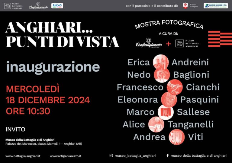 Mercoledì 18 Dicembre 2025 sarà inaugurata alle ore 10.30 la mostra fotografica “Anghiari … Punti di Vista” che quest’anno si colloca in una location molto prestigiosa: la sede del Museo della Battaglia di Anghiari, nel bellissimo Palazzo del Marzocco di Piazza Mameli 1.