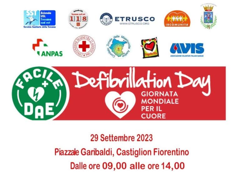 Il 29 settembre, in occasione del World Heart Day 2023 (giornata mondiale per il cuore), l’Asl Toscana su est, in collaborazione con Il Comune di Castiglion Fiorentino ed il supporto di molti partners, organizza il Defibrillation Day che ha come obiettivo cardine la diffusione della cultura dell’uso precoce del defibrillatore semiautomatico nella popolazione per il primo soccorso all’arresto cardiaco sul territorio.