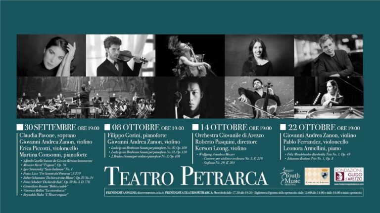 Torna l’Arezzo Youth Music Festival, giunto alla sua quarta edizione, ancora una volta nella splendida cornice del Teatro Petrarca di Arezzo con quattro imperdibili date: 30 settembre,8,14 e 22 ottobre. Un appuntamento che nel tempo ha coltivato pubblico e seguito grazie all’altissimo livello degli artisti coinvolti, al suo respiro internazionale, e soprattutto, alla sua vocazione di rimettere la musica classica al centro.