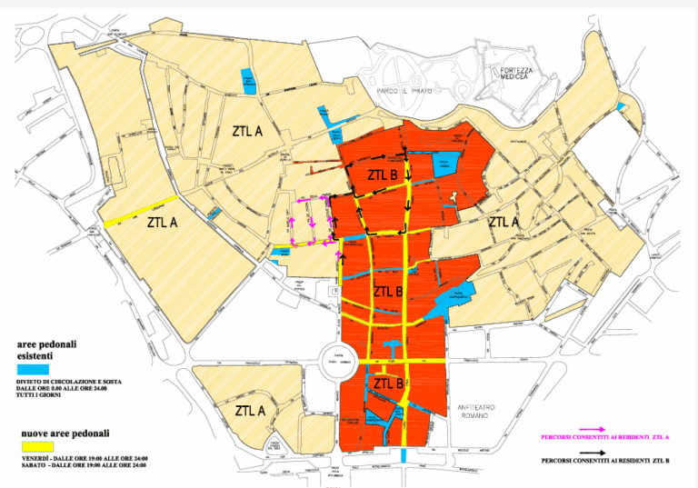 Lo stesso divieto interesserà via San Lorentino nel tratto tra via Garibaldi e via Leone Leoni, via Guido Monaco tra il varco di accesso alla ztl e piazza San Francesco, via Cavour tra piazza San Francesco e via Isidoro del Lungo.