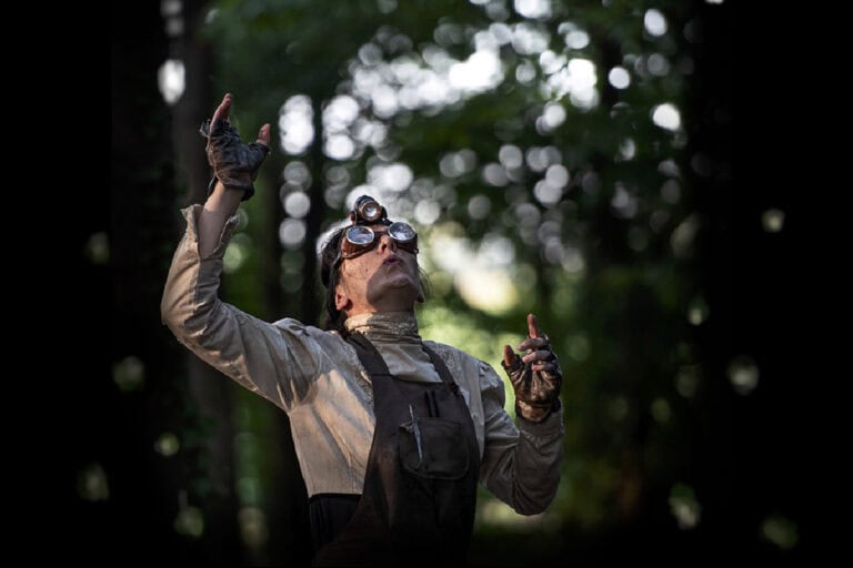 Attorno al pubblico immerso nel bosco, infatti, agiscono i personaggi della celebre fiaba per bambini, con le note della viola e con le percussioni che si intrecciano alla narrazione di una bizzarra cantastorie che guida lungo il dipanarsi della storia tra incontri inattesi per imparare ad affrontare sentimenti di paura, solitudine e dolore.
