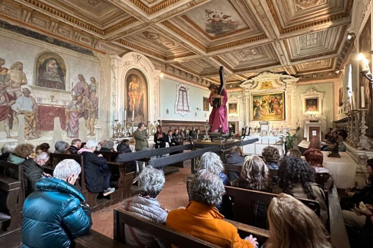 Da sabato 24 febbraio i «turisti a km zero» hanno visitato il Teatro Signorelli, la chiesa di Sant’Angelo a Metelliano, Santa Maria Nuova, villa Sandrelli, Santa Maria delle Grazie al Calcinaio e infine le chiese cortonesi con i loro simulacri. Insieme alla guide sono intervenuti Mario Aimi, Liletta Fornasari, Ada Salvi, Pietro Matracchi e Paolo Giulierini.