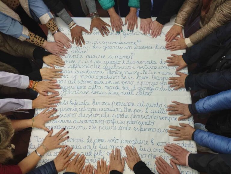 Il tema del cucito è uno degli aspetti sui quali si basa il nostro lavoro: cucire e ricamare permette alle persone di distogliere l’attenzione dai propri problemi, dalla tristezza, dai pensieri negativi. È un modo per superare problemi e avversità.