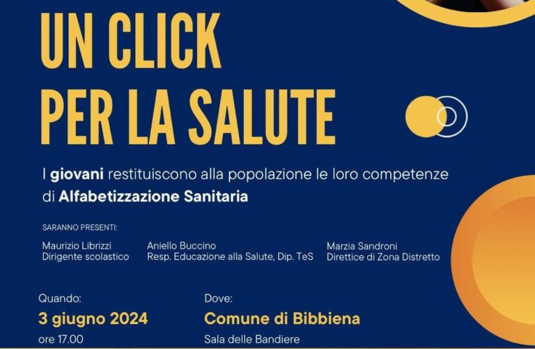 Per questo lunedì 3 giugno a Bibbiena si terrà dalle 17 alle 19 “Un click per la salute. I giovani restituiscono alla popolazione le loro competenze di Alfabetizzazione Sanitaria”, iniziativa promossa da Asl Toscana Sud Est, Comune di Bibbiena e Isis Enrico Fermi.