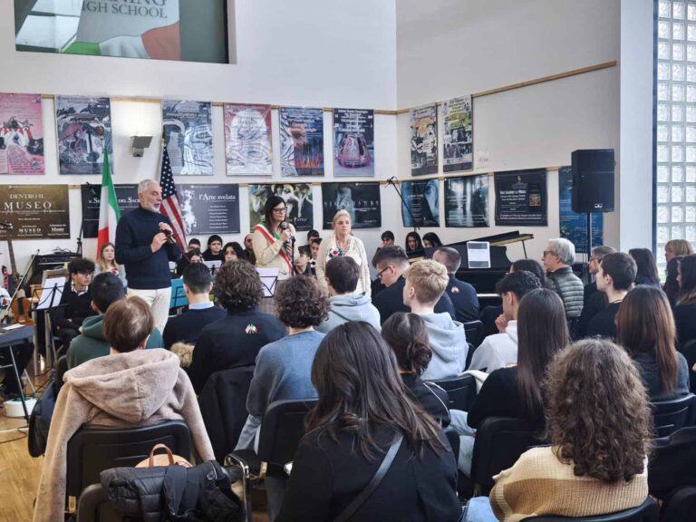 Durante la festa, l’ensemble orchestrale della scuola ha suonato gli inni nazionali italiano e americano, un momento solenne che ha sottolineato la forza del legame tra le due città. Non è mancata la suggestiva esibizione degli sbandieratori dei Borghi e Sestieri Fiorentini, che si sono esibiti nella palestra del Polo scolastico.