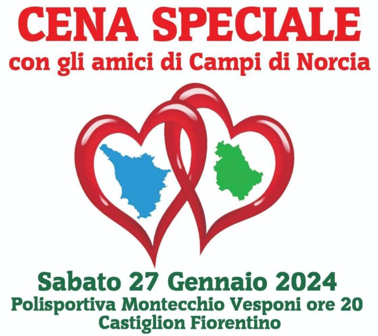 Una cena speciale per gli amici di Campi di Norcia: è l’iniziativa in calendario sabato 27 gennaio alle ore 20 alla Polisportiva di Montecchio Vesponi.