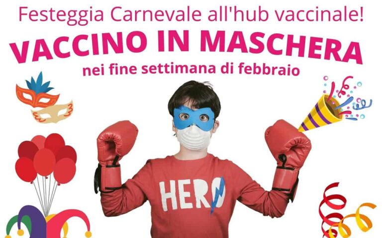 โVaccino in maschera: festeggia Carnevale all’hub vaccinale con gli Open Day: tutti i weekend del mese di febbraio vaccinazione dedicata a bambini e giovaniโ.