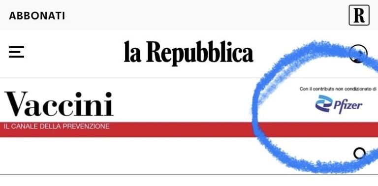 Dal produttore al consumatore, qualche legittimo sospetto sorge ma Repubblica ci tiene a precisare che si tratta di un contributo non condizionato ovvero Pfizer finanzia economicamente il canale, ma allo stesso tempo non influenza in alcun modo il contenuto degli articoli.