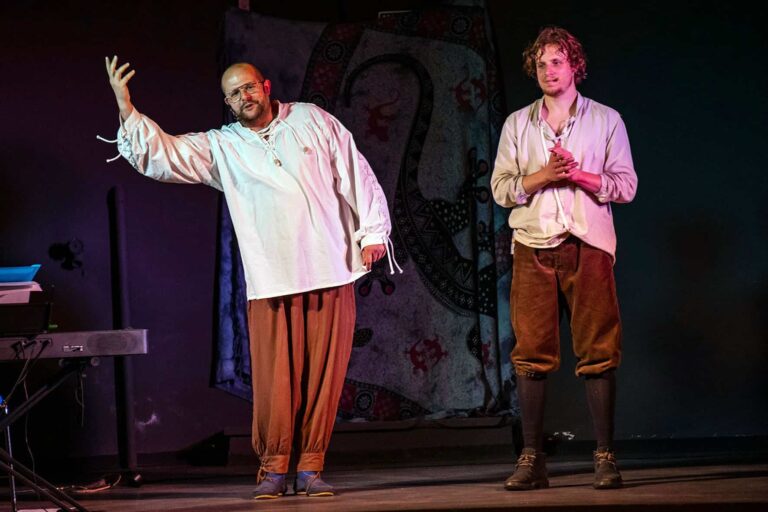 Siamo felici di debuttare con questo spettacolo alla “Notturna di Sant’Angelo”, un format che abbiamo inaugurato con i nostri spettacoli anni fa e che abbiamo contribuito a far crescere attraverso un’insolita ed emozionante unione tra teatro, natura e risate sotto le stelle».