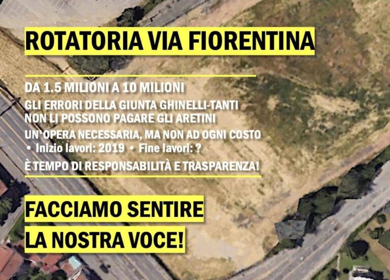Pd, Arezzo 2020 e Movimento 5 Stelle organizzano per venerdì 28 giugno alle 18 presso lo spazio antistante la farmacia comunale di via Fiorentina un presidio di protesta per il protrarsi dei lavori all’incrocio fra la strada in questione e la tangenziale urbana.