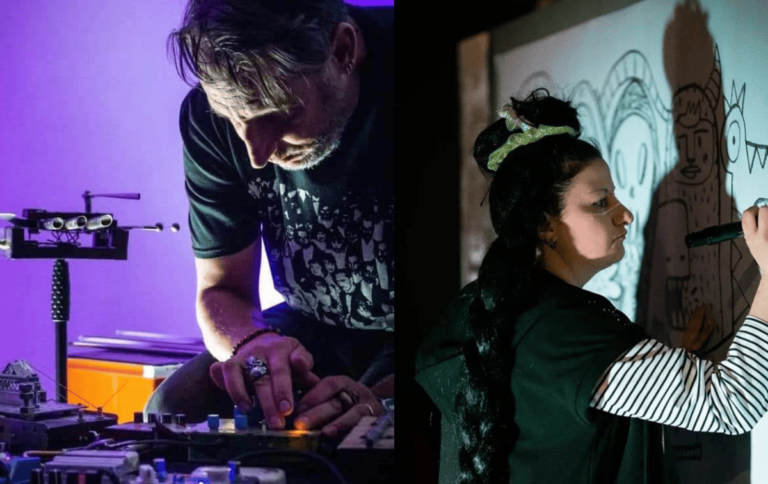 Entrambi improvviseranno. Mentre Gabriele Mercatelli, nome d’anagrafe di Lele Synth, farà vibrare le nostre atmosfere interiori con suoni davvero da altri mondi che solo lui, con strumenti handmade, riesce a creare, Benedetta Viviani, In Arte Benz, ci incanterà dando prova della sua maestria col pennarello, lasciandosi ispirare dalla musica, dall’ambiente e dal momento in un’opera di live painting.