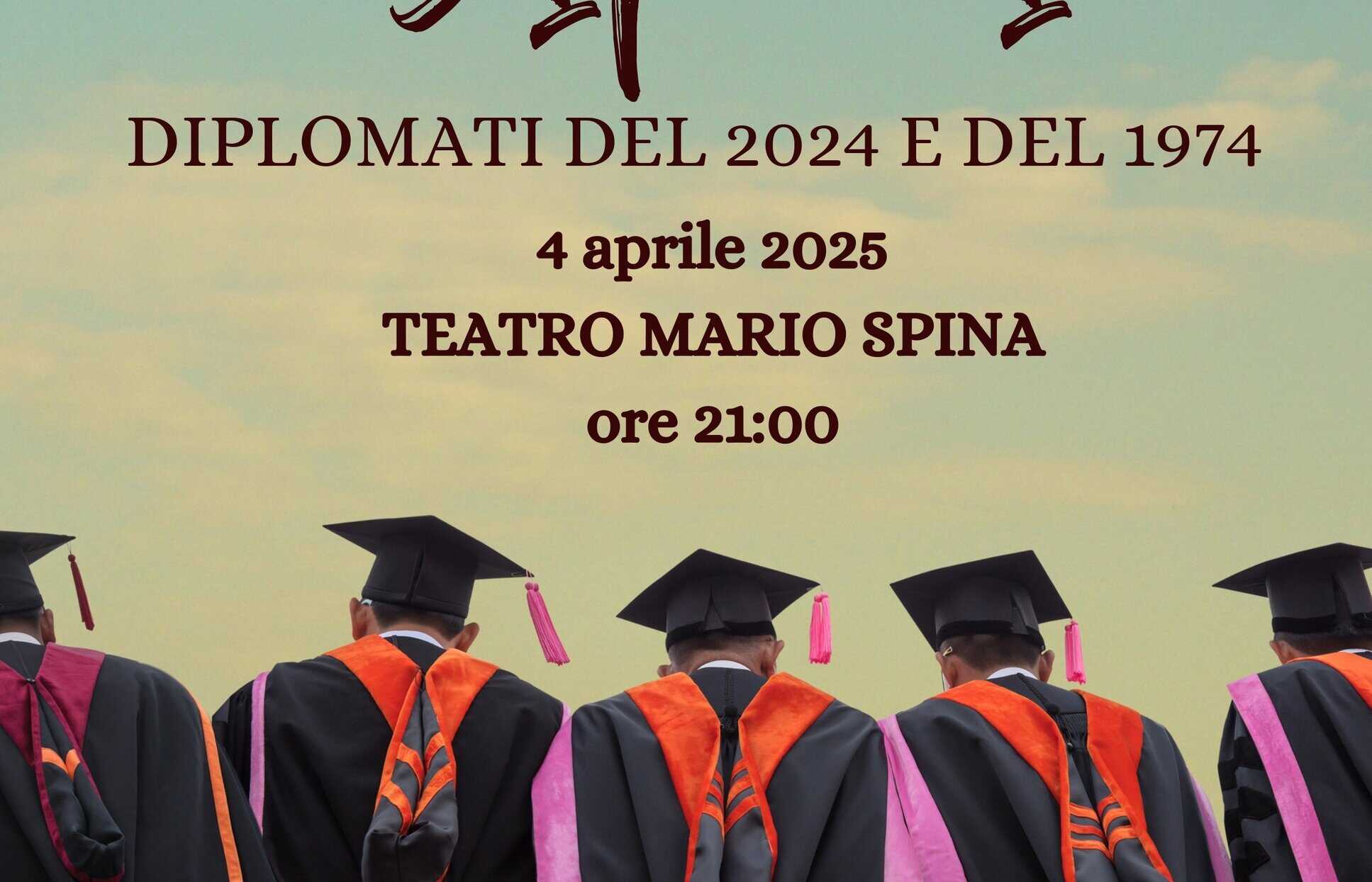 Al Teatro Mario Spina di Castiglion Fiorentino, venerdì 4 aprile alle ore 21, è in programma una serata per celebrare i diplomati del 2024 e quelli che il diploma l’hanno conseguito nel 1974, esattamente cinquant’anni fa.