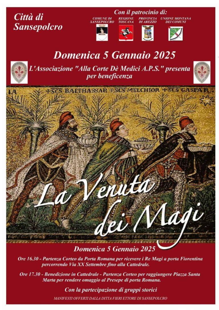 la Venuta dei Magi, una manifestazione che unisce tradizione, spettacolo e solidarietà organizzata dall’Associazione “Alla corte de’ Medici”.