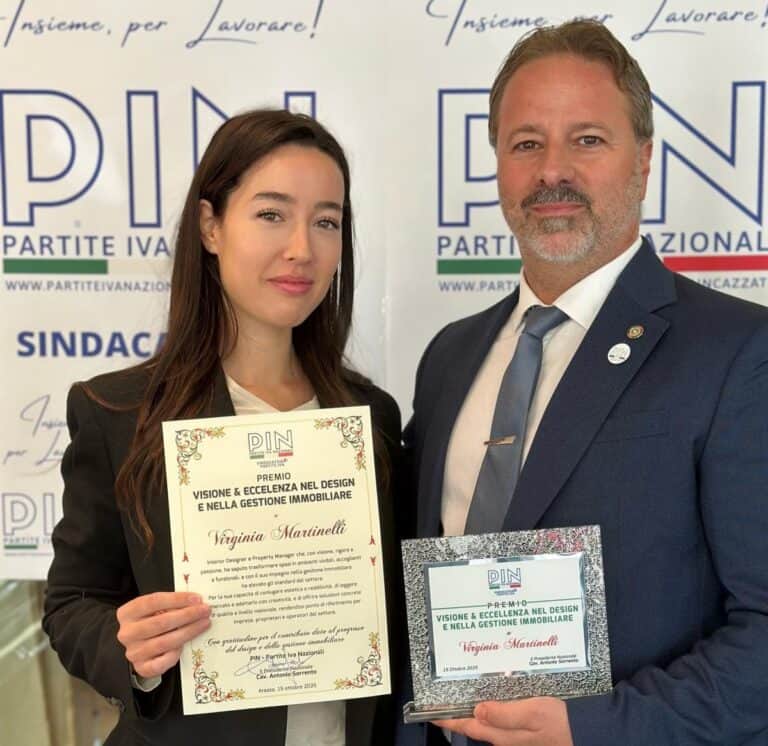 Il riconoscimento “Visione & Eccellenza nel Design e nella Gestione Immobiliare”, conferitole da P.I.N., Partite Iva Nazionali durante una convention ad Arezzo, non è stato solo un premio: è stato un segnale chiaro.